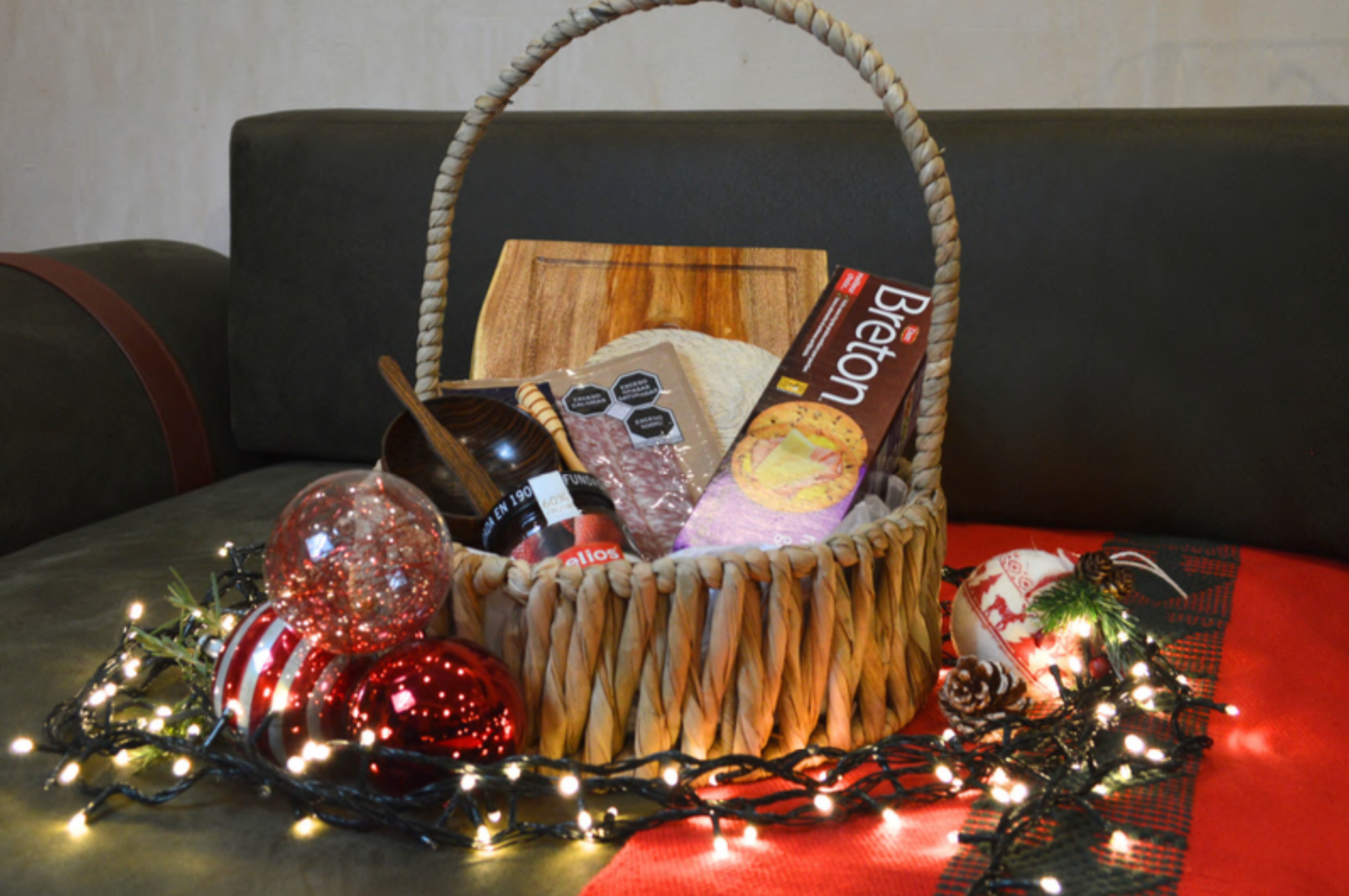 Canasta tejida a mano con fibras naturales de Palma de Chuspata; cuidadosamente armada para regalar momentos especiales. Incluye una selección de productos como vino, ate, aceitunas y otros detalles pensados para compartir y disfrutar. 🎄🍷