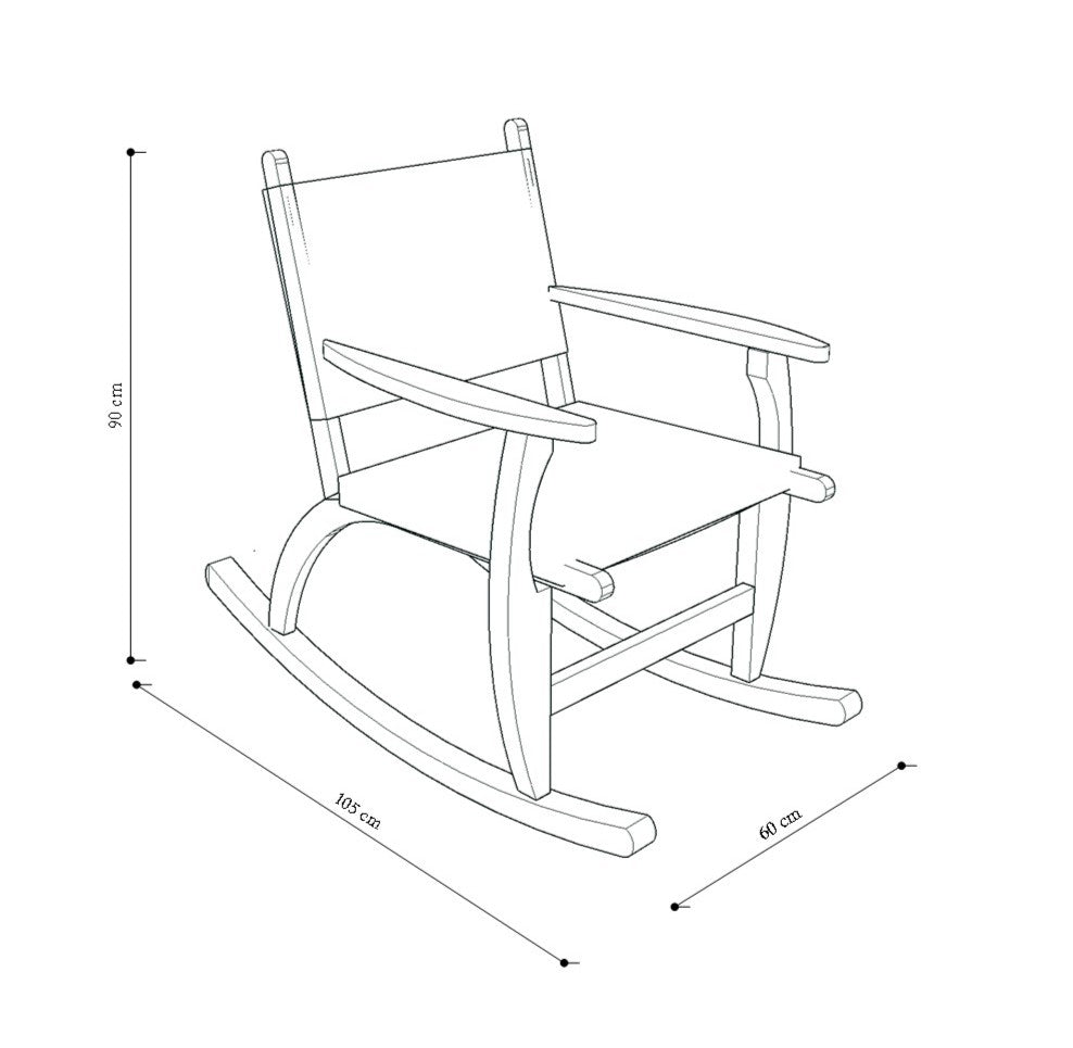 Silla mecedora con estructura elaborada a base de Madera de Teca, acabado mate con cera natural; con tejido artesanal a mano en cordón natural.