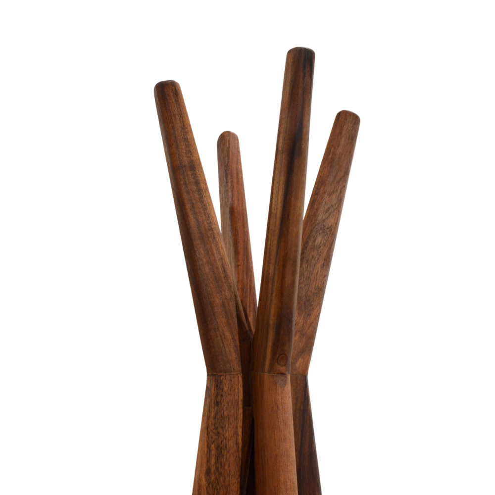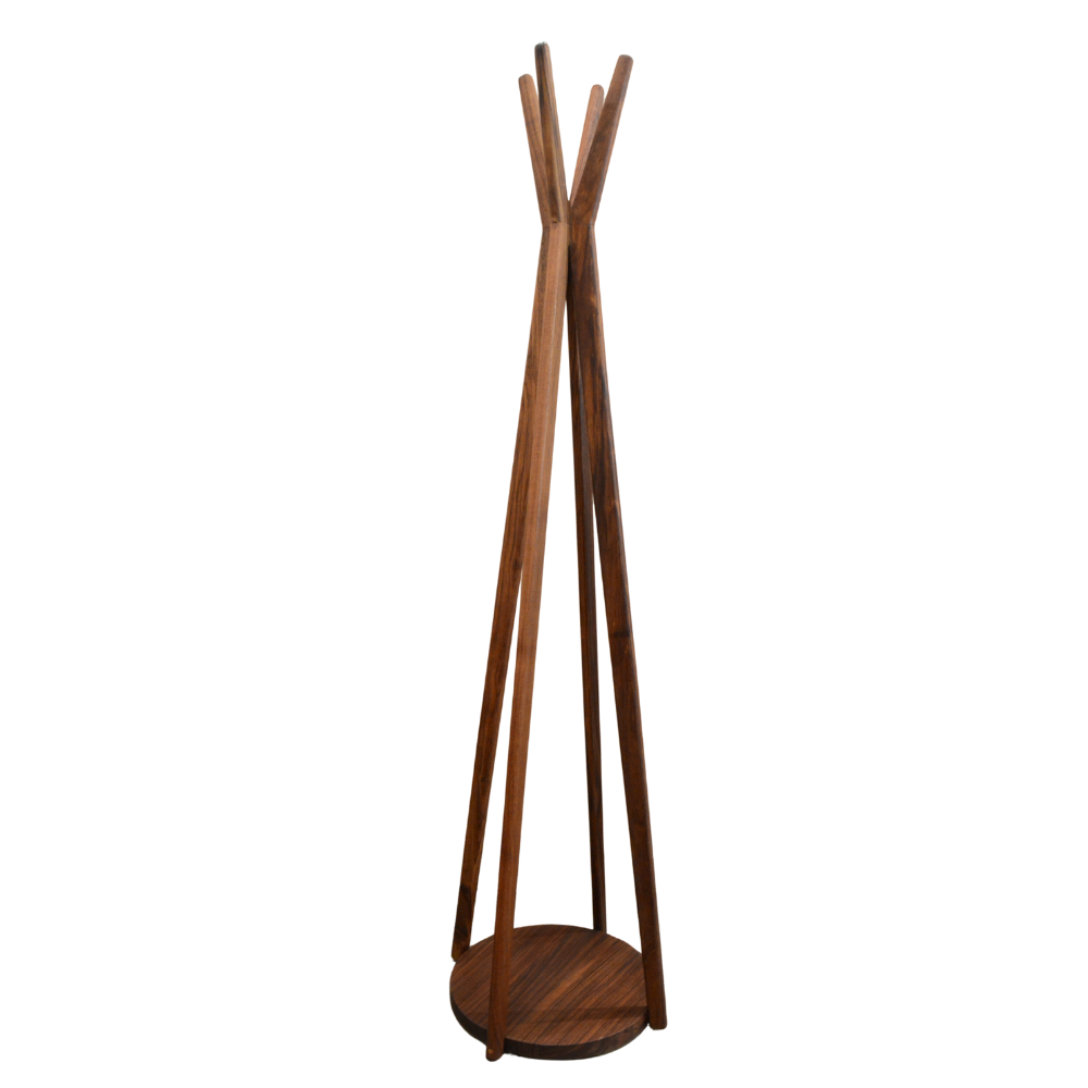 Perchero de piso elaborado en madera maciza de Tzalam, acabado mate, con resbalones afelpados en las patas.